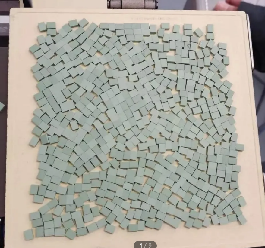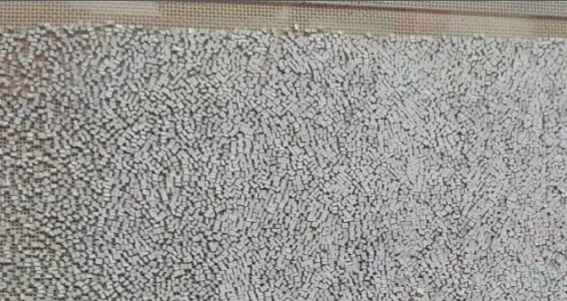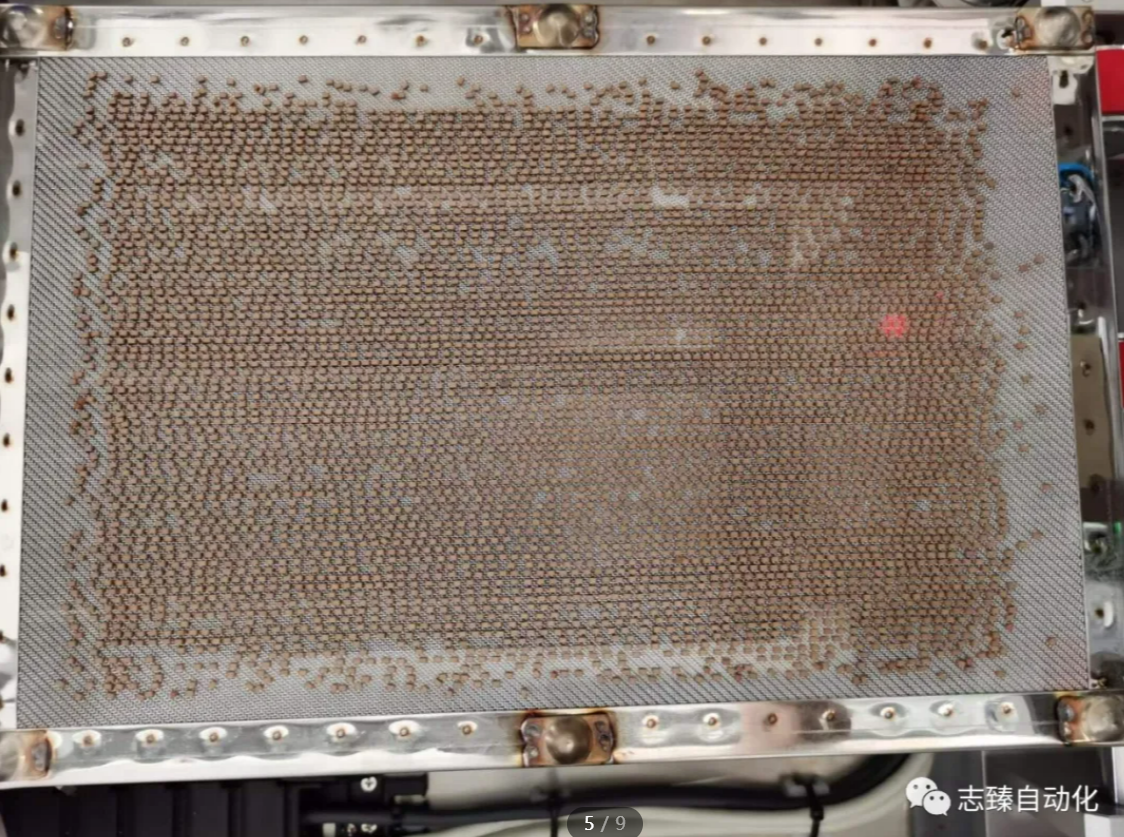 燒端爐為網(wǎng)帶式隧道爐,作業(yè)一般為前側(cè)投入后側(cè)回收,一條爐子通常需要兩個(gè)人進(jìn)行作業(yè),因為燒結(jié)時(shí)間的要求爐子行走速度很慢,往往人工在等待爐子人員使用上極大的浪費(fèi),人工布料效果不穩(wěn)定,重疊布料或密接布料都會(huì)造成粘連率增加的問(wèn)題,天津志臻自動(dòng)布料收料設(shè)備在做到無(wú)人值守全自動(dòng)作業(yè)的同時(shí),實(shí)現(xiàn)了矩陣布料、單層平鋪布料、雙層疊層投料的效果,并在收料設(shè)備配置自動(dòng)精密篩選功能,避免銅端長(zhǎng)時(shí)間與空氣接觸有氧化的問(wèn)題,以下是布料效果圖片: